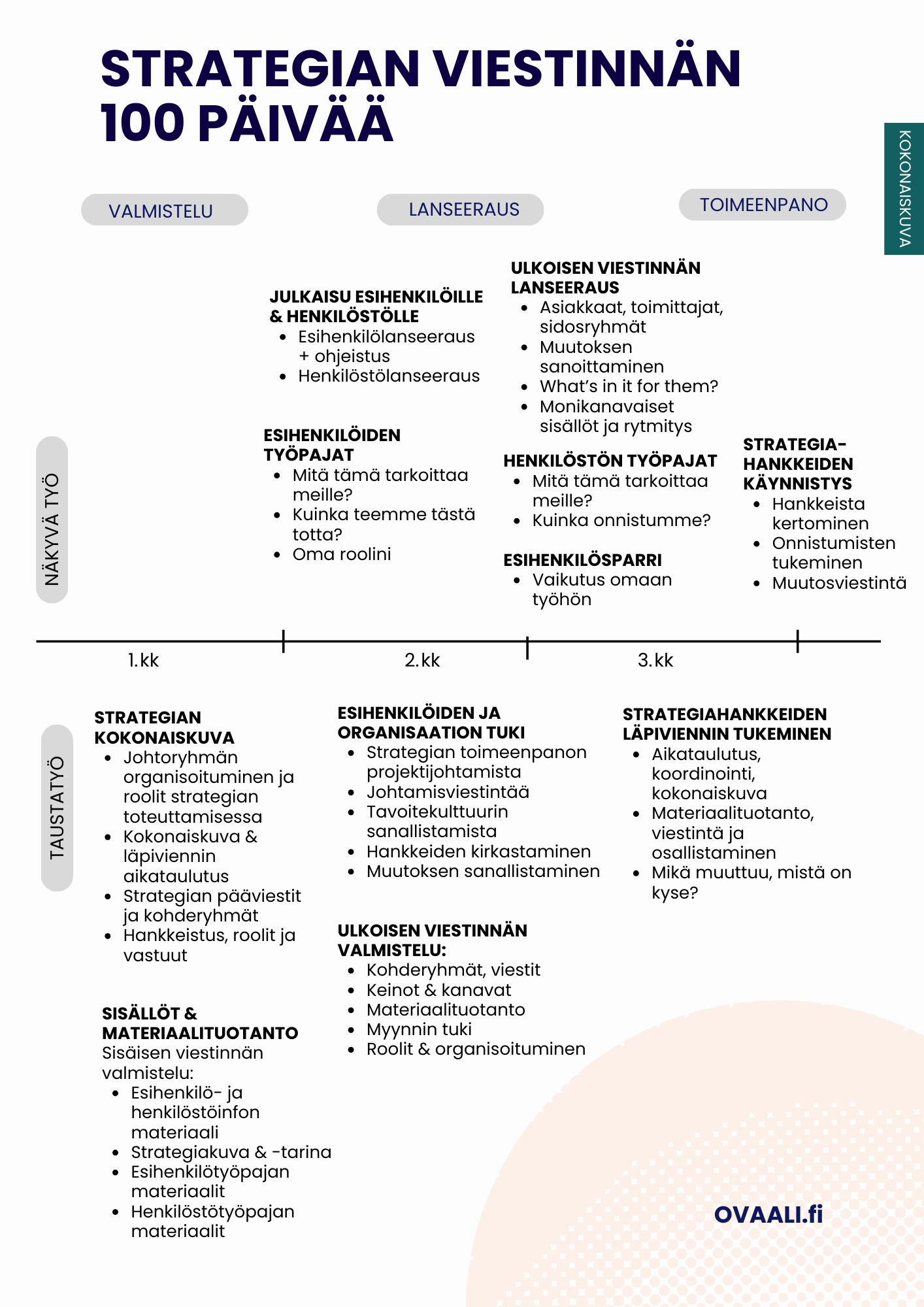 Alla aikajanasivu työn alla olevasta strategian viestinnän oppaastani.